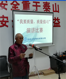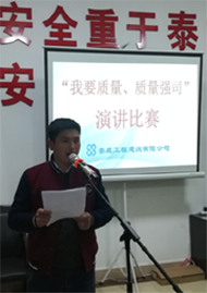 2017年11月17日晚,公司在機(jī)關(guān)辦公室大會(huì)議室舉辦了一場別開生面的“我要質(zhì)量,質(zhì)量強(qiáng)司”演講比賽。共有16位項(xiàng)目經(jīng)理上臺(tái)發(fā)表了主題演講。經(jīng)過評(píng)委現(xiàn)場打分評(píng)定,來自百弘學(xué)府城的項(xiàng)目經(jīng)理李朝陽榮獲一等獎(jiǎng);公司江龍灘基地項(xiàng)目經(jīng)理李紅暉、雙峰三塘鋪獨(dú)立工礦區(qū)現(xiàn)代產(chǎn)業(yè)園蜉化器項(xiàng)目項(xiàng)目經(jīng)理謝晃分獲二等獎(jiǎng)。
